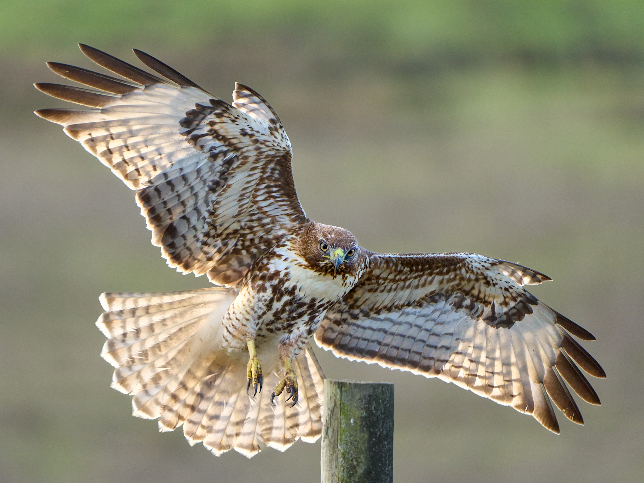The highlight was definitely the moment when the hawk returned to the fence after an unsuccessful dive at some prey. It flew right towards me, and I was able to track it all the way in, capturing the flare as the hawk landed on a post. Picking the perfect frame from moments like these is always tough. I liked the first one best because there was still eye contact before the hawk focused more on the perch, but that did mean I lost out on the talons extending to grab the perch.