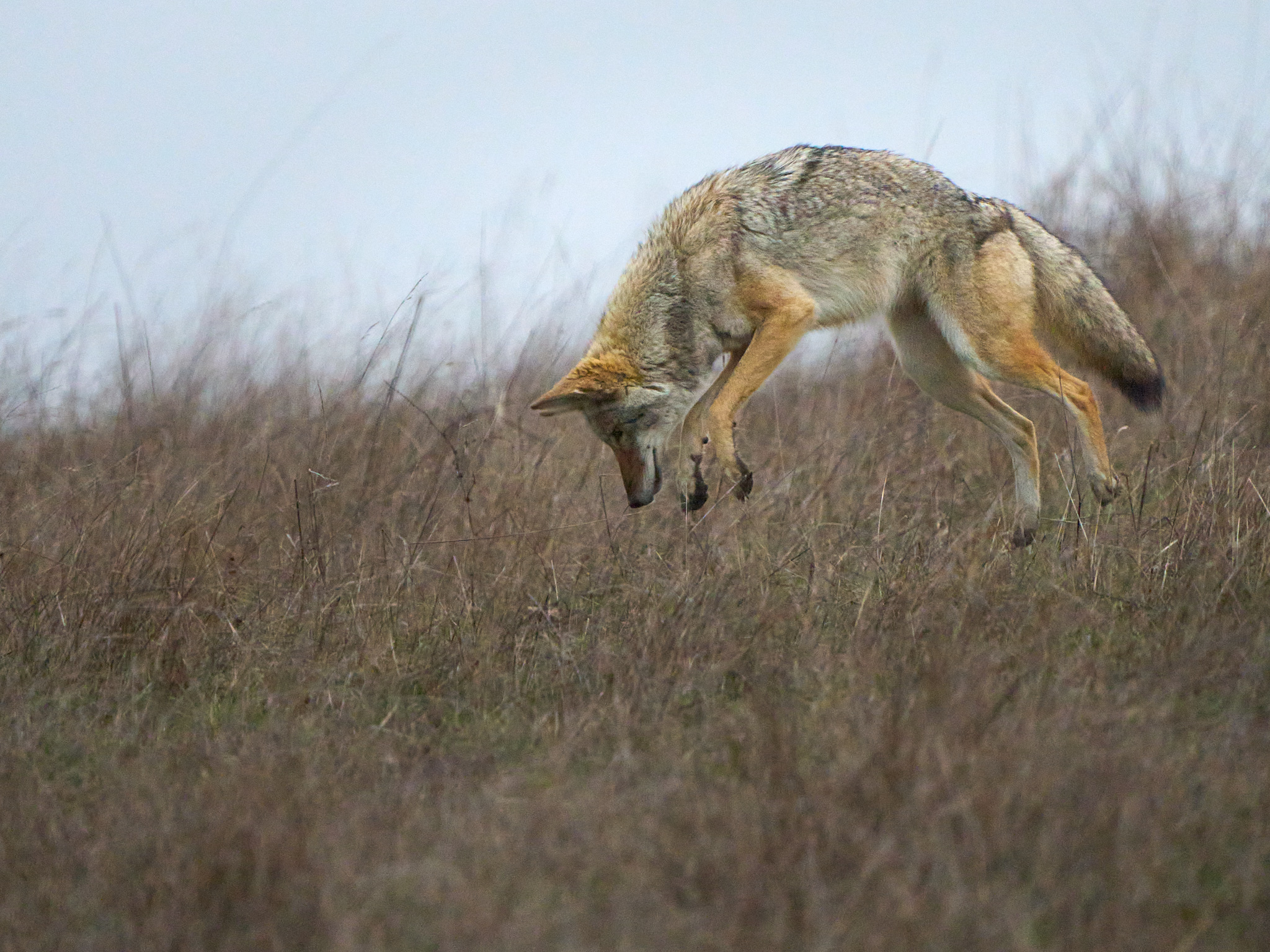 A leaping Coyote is a classic Point Reyes shot. While we’d mostly been skipping Coyotes in our search for interesting behaviors and scenic shots, this one appeared to be hunting intently, so we stopped to watch. Daniel had previously showed me how to see the leap coming when a Coyote jumps down a gopher hole, so I was able to put that into practice. As it turned out, the Coyote did not do the most enthusiastic of leaps, barely getting off the ground, but I got the shot.