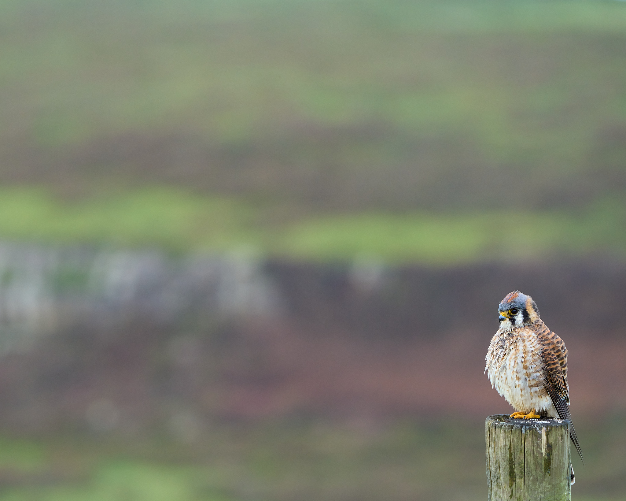 An American Kestrel scans a field for prey.