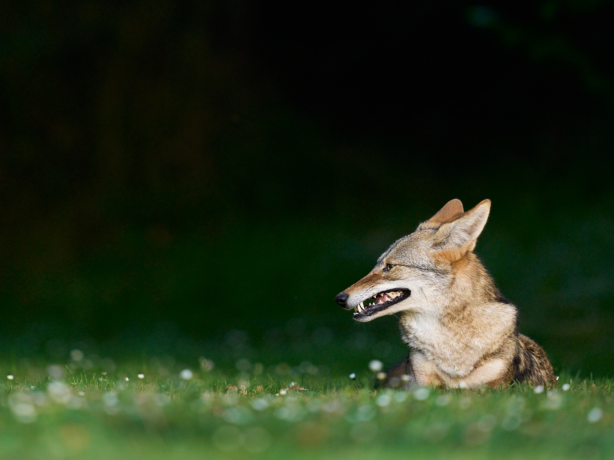 This Coyote has found a very photogenic place to pose. Just look at how the light falls off beautifully behind it. Unfortunately, it looks about as awkward as I do when trying to smile.