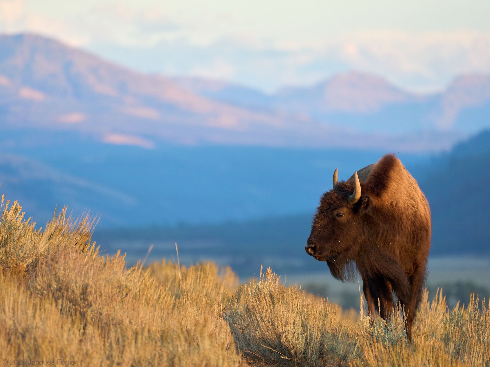 As soon as I saw the Lamar Valley, I wanted to get a photo of an American Bison with the Rocky Mountains in the background. Easier said than done as they kept photobombing each other and messing up my compositions. When I saw a group head up a hillside, I knew I had my chance, and quickly followed them up.