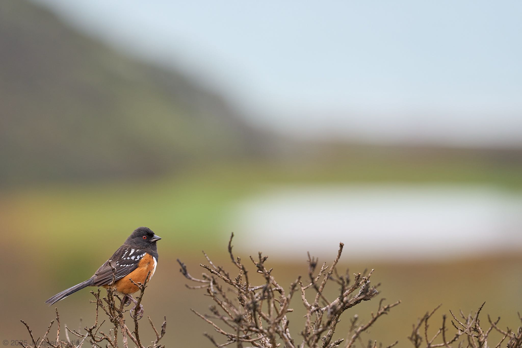 Usually they’re pretty skittish, but today a Spotted Towhee stopped by my portrait studio to briefly sit for some headshots.