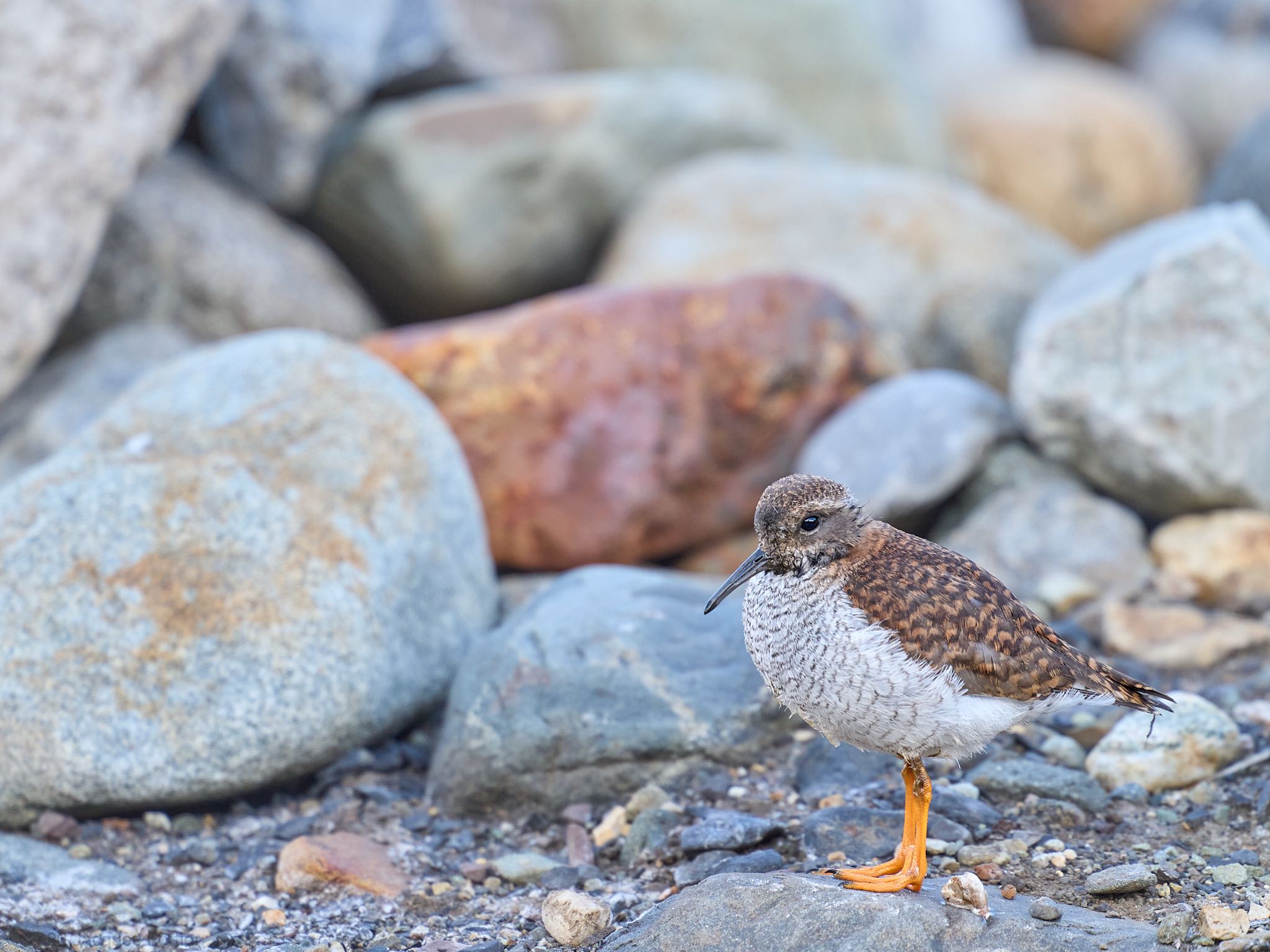 JP gave me a few hints about their typical habitat, and he had a good idea of where to start looking, so it only took us about 20 minutes to track down the adults. They’re easiest to spot if they’re in motion. If not, their bright orange legs are a good clue. And if those are hidden you’re just going to have to look at every rock until one of them transforms into a shorebird.